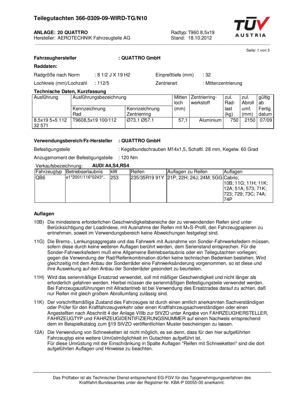 teilegutachten au ATS T960 8