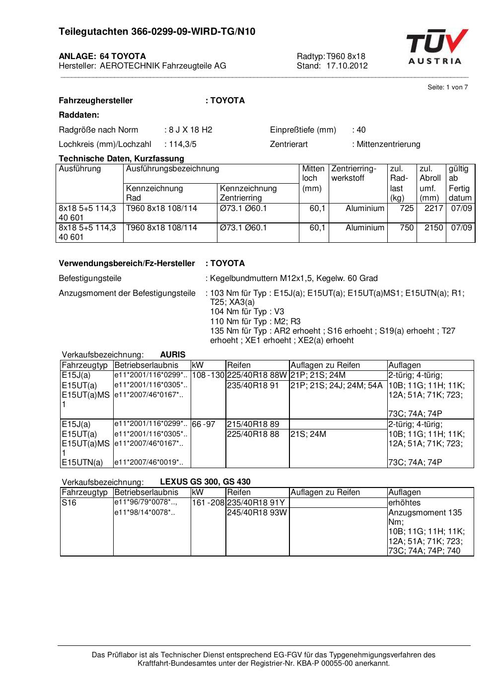 teilegutachten au ATS T960 8x18