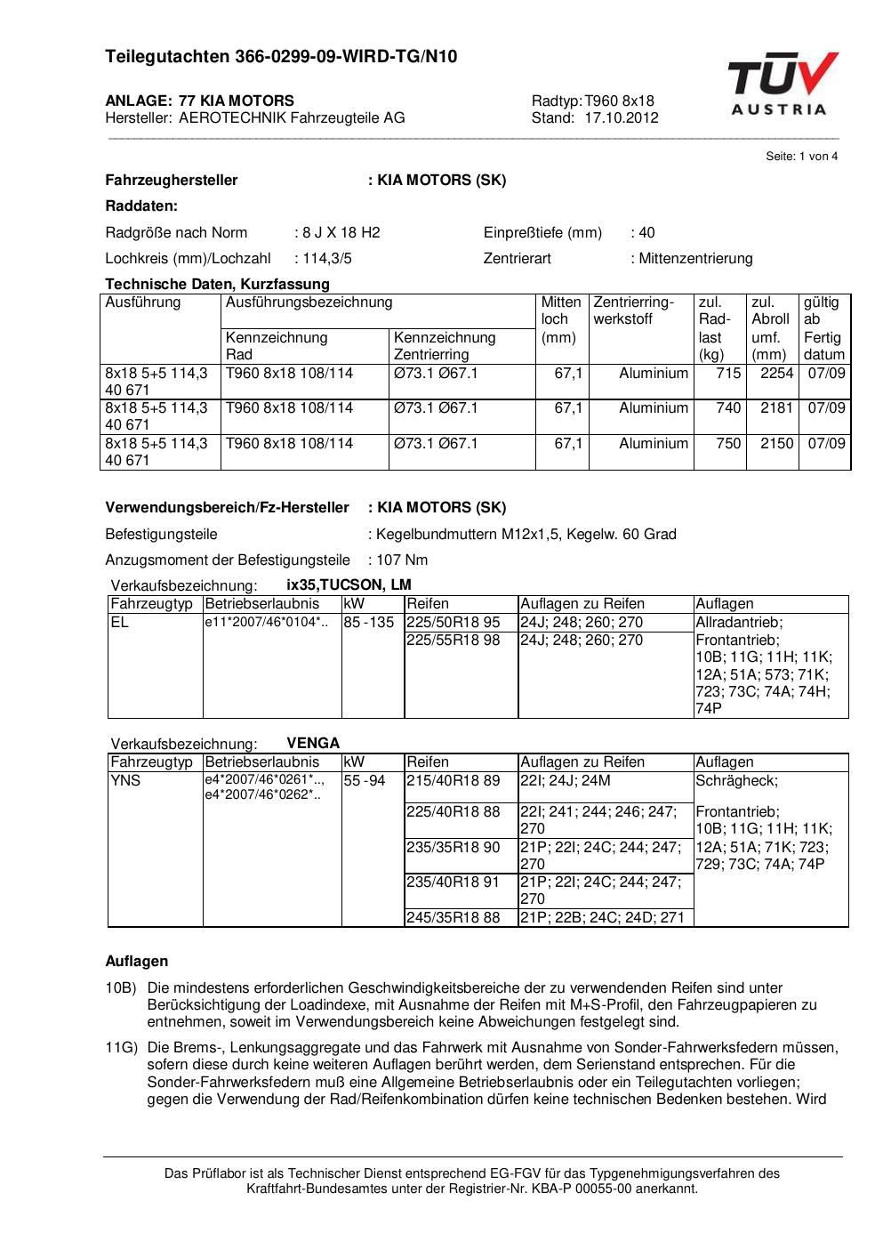 Dieses Gutachten (teilegutachten) bezieht sich auf die Alufelge ATS T960 8x18 in der Ausführung 8Jx18 ET 0, Mittenloch 0 mm . Im PDF findest du typischerweise zulässige Reifengrößen, Auflagen/Anbauhinweise und – je nach Dokument – Hinweise zur Eintragung.