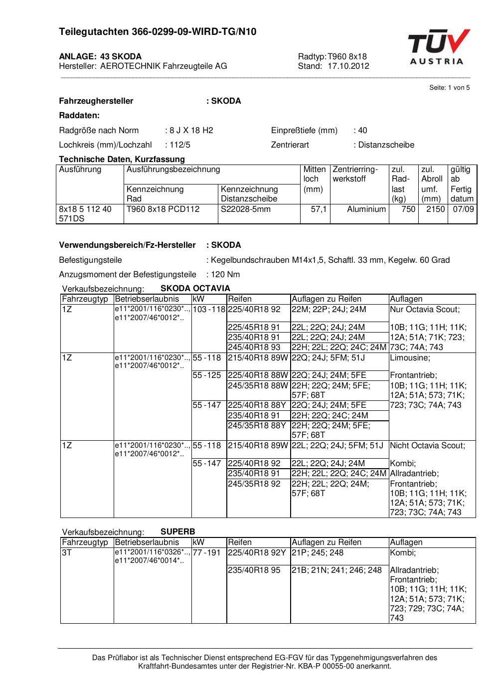 Dieses Gutachten (teilegutachten) bezieht sich auf die Alufelge ATS T960 8x18 in der Ausführung 8Jx18 ET 0, Mittenloch 0 mm . Im PDF findest du typischerweise zulässige Reifengrößen, Auflagen/Anbauhinweise und – je nach Dokument – Hinweise zur Eintragung.