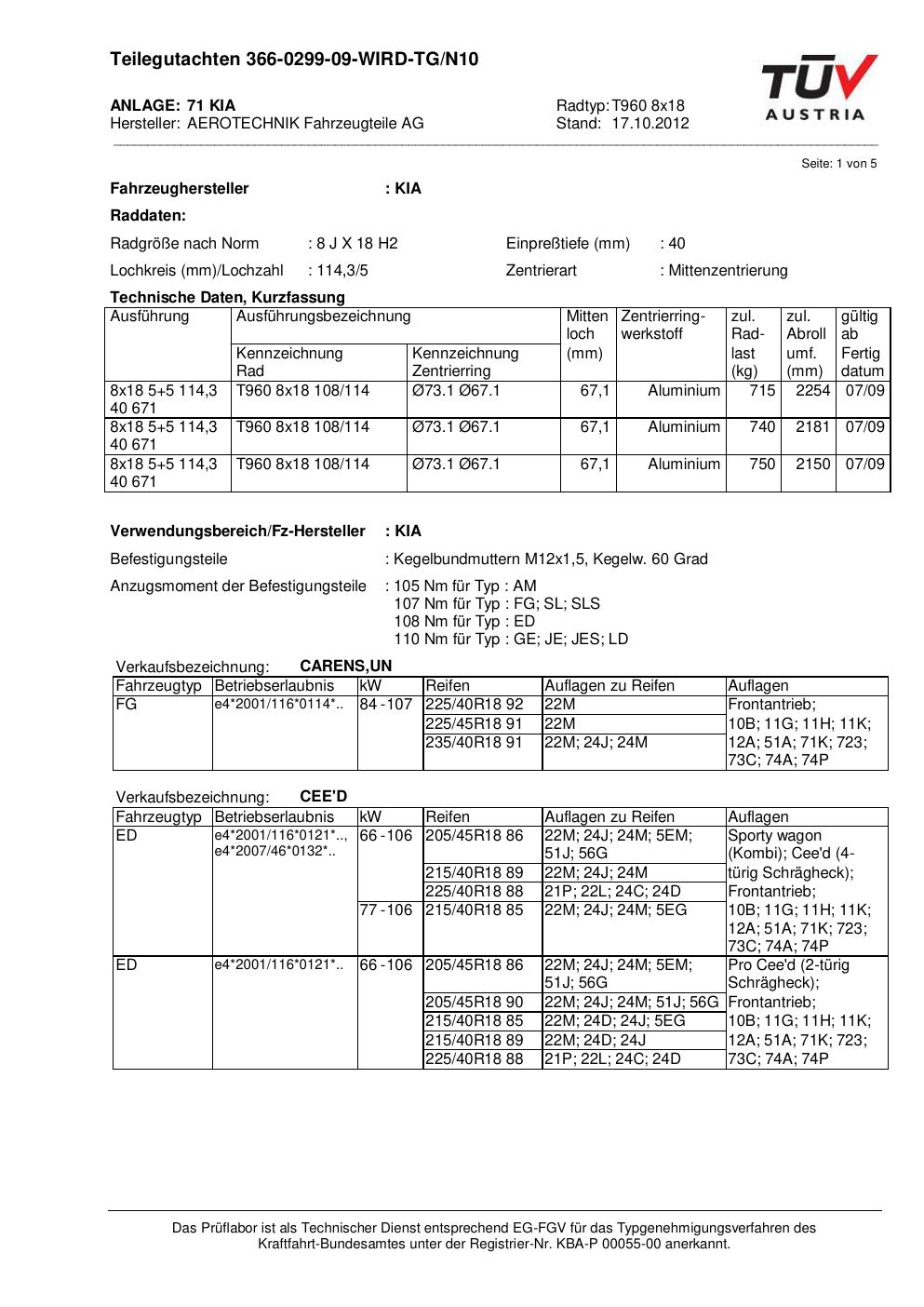 teilegutachten au ATS T960 8x18