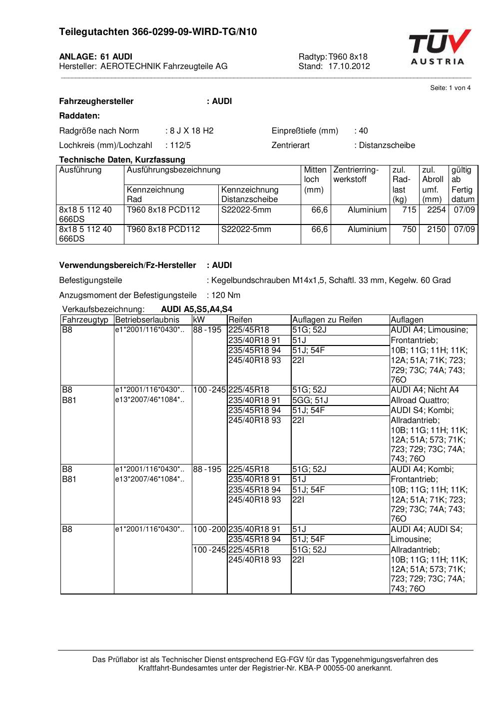 teilegutachten au ATS T960 8x18