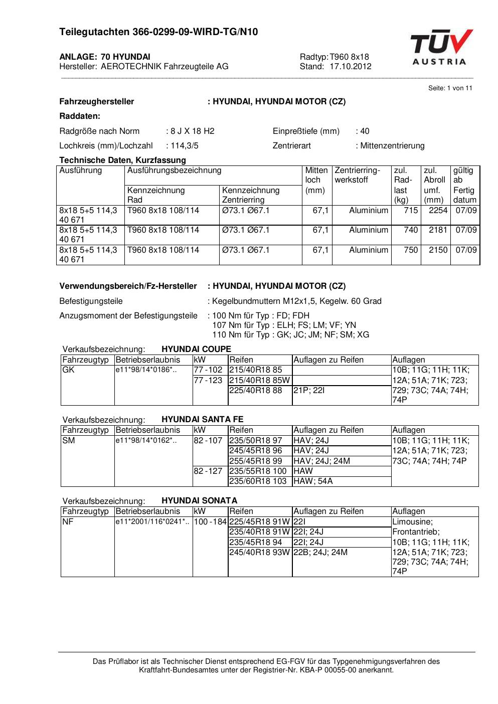 Dieses Gutachten (teilegutachten) bezieht sich auf die Alufelge ATS T960 8x18 in der Ausführung 8Jx18 ET 0, Mittenloch 0 mm . Im PDF findest du typischerweise zulässige Reifengrößen, Auflagen/Anbauhinweise und – je nach Dokument – Hinweise zur Eintragung.