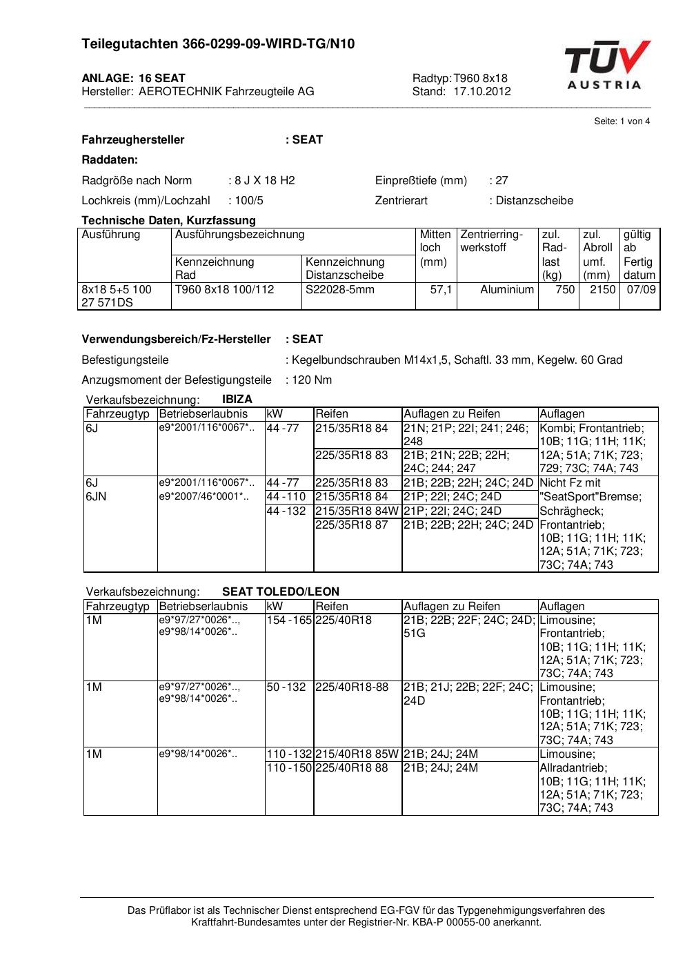 teilegutachten au ATS T960 8x18