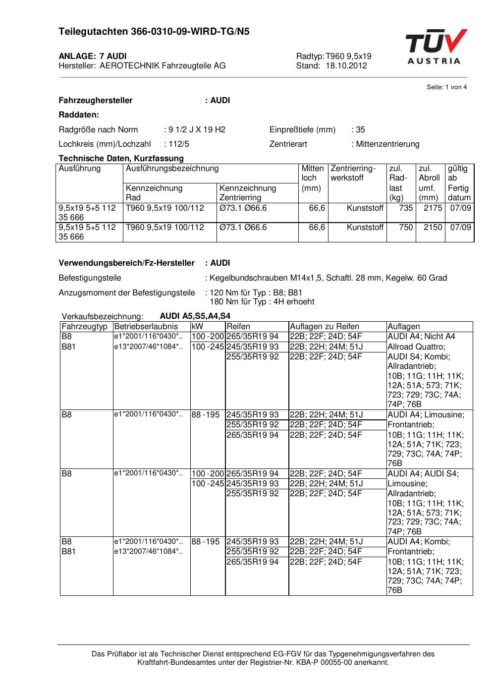 teilegutachten au ATS T960 9