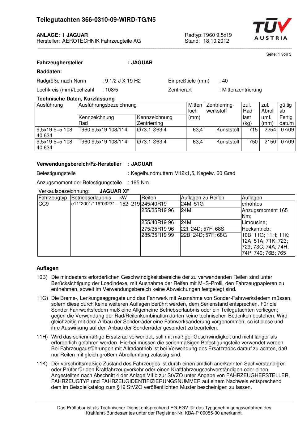 Dieses Gutachten (teilegutachten) bezieht sich auf die Alufelge ATS T960 9 in der Ausführung 9.5Jx19 ET 0, Mittenloch 0 mm . Im PDF findest du typischerweise zulässige Reifengrößen, Auflagen/Anbauhinweise und – je nach Dokument – Hinweise zur Eintragung.