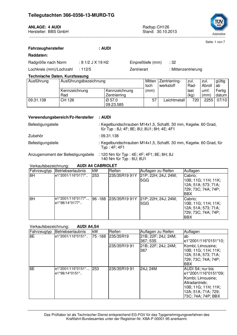 teilegutachten au BBS CH126