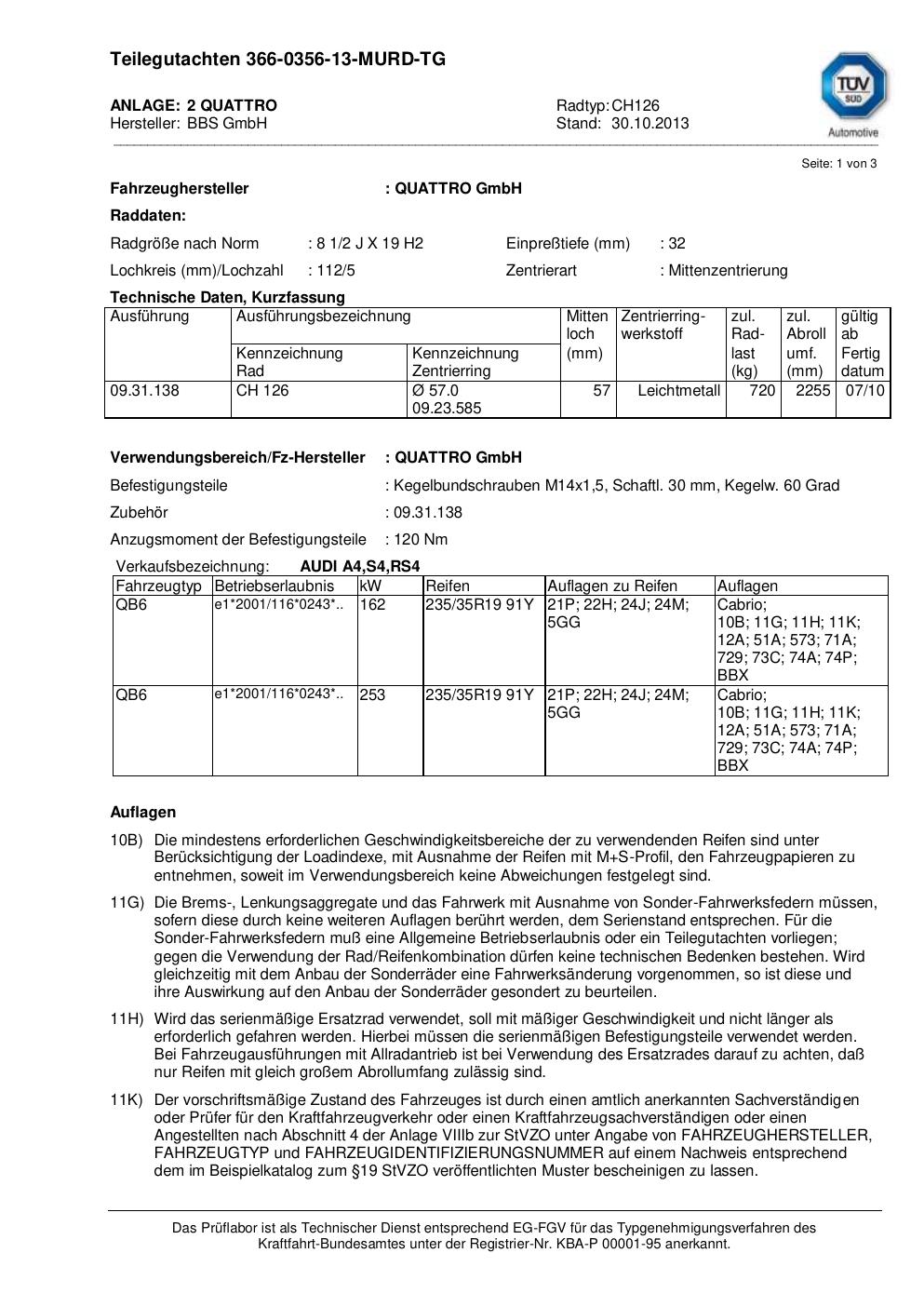 teilegutachten au BBS CH126