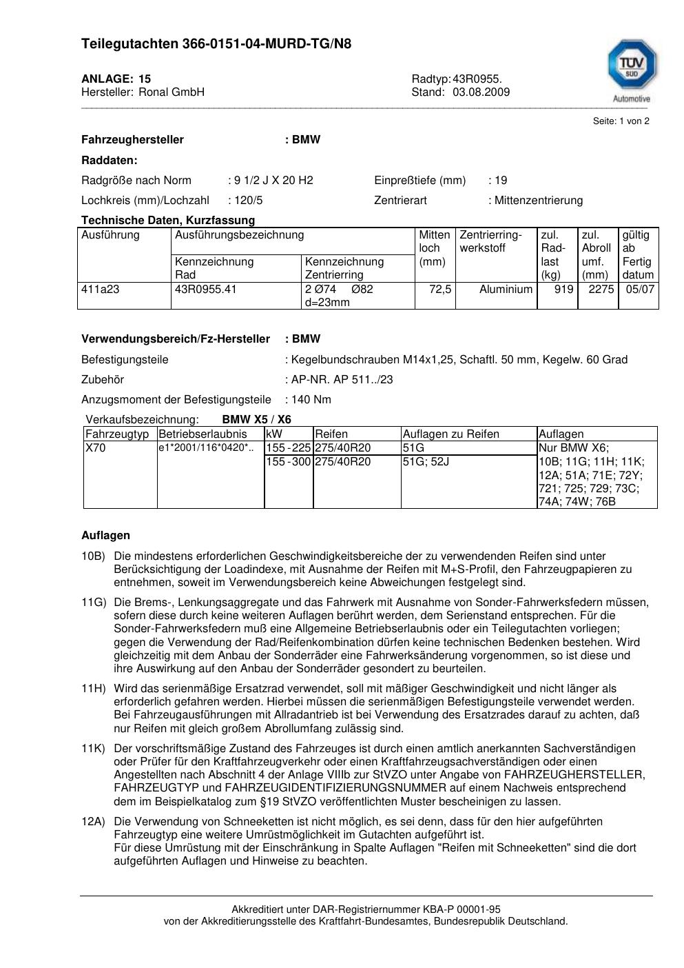 teilegutachten au Ronal 43R0955