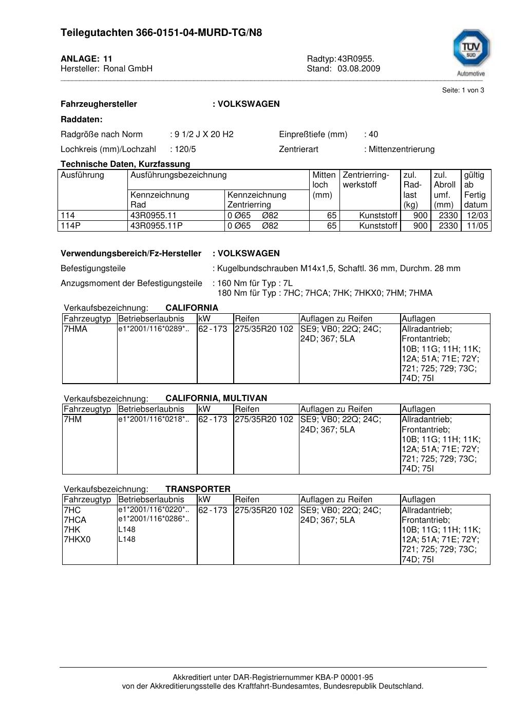 teilegutachten au Ronal 43R0955