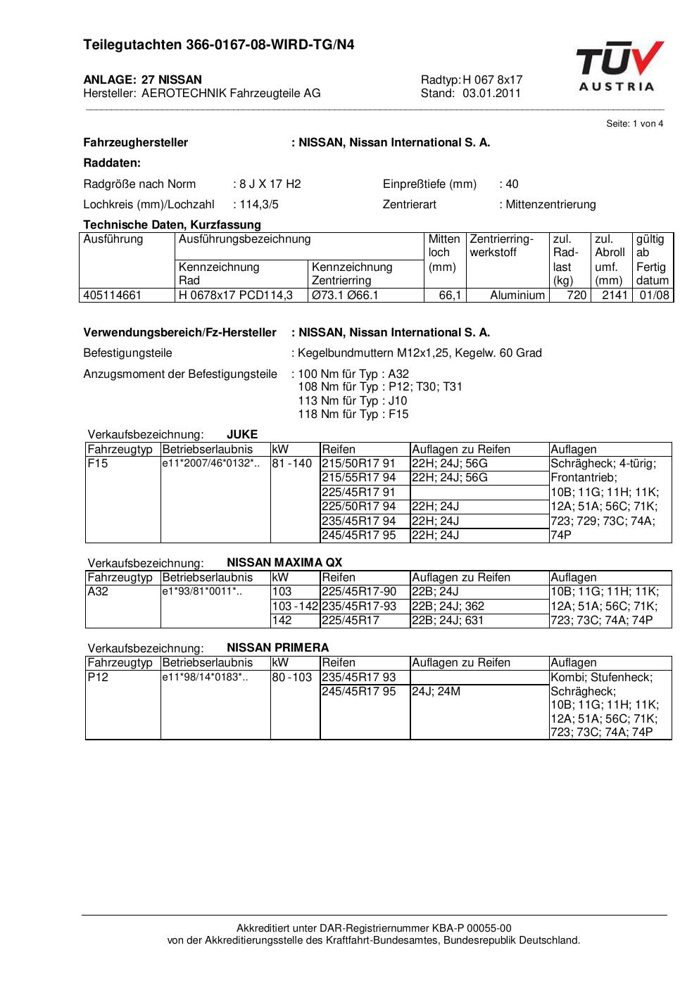 teilegutachten beschriebenen ATS H 067 8x17
