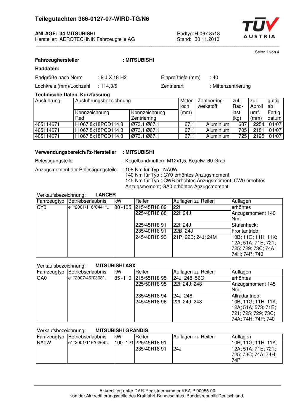 Dieses Gutachten (teilegutachten) bezieht sich auf die Alufelge ATS H 067 8x18 in der Ausführung 8Jx18 ET 0, Mittenloch 0 mm . Im PDF findest du typischerweise zulässige Reifengrößen, Auflagen/Anbauhinweise und – je nach Dokument – Hinweise zur Eintragung.