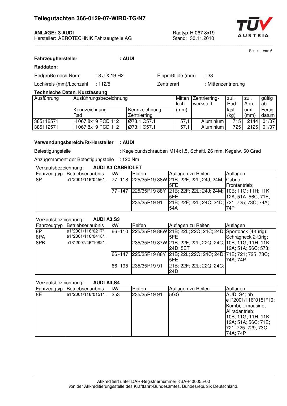 teilegutachten beschriebenen ATS H 067 8x19