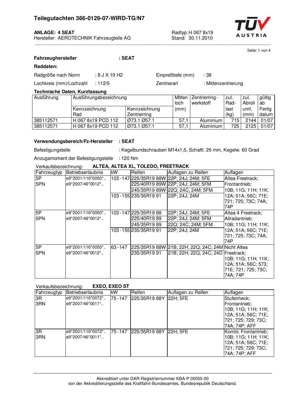 teilegutachten beschriebenen ATS H 067 8x19