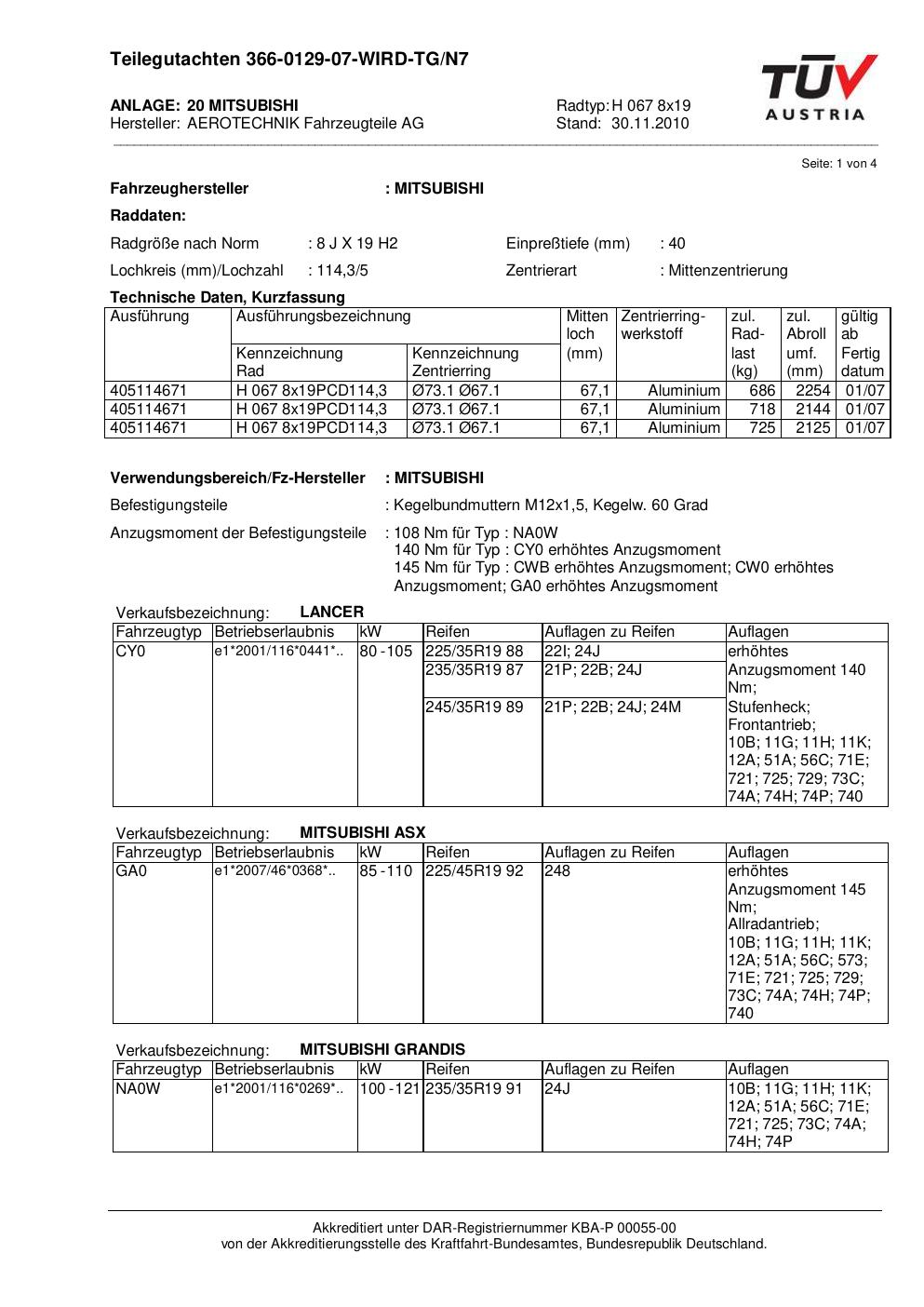 teilegutachten beschriebenen ATS H 067 8x19