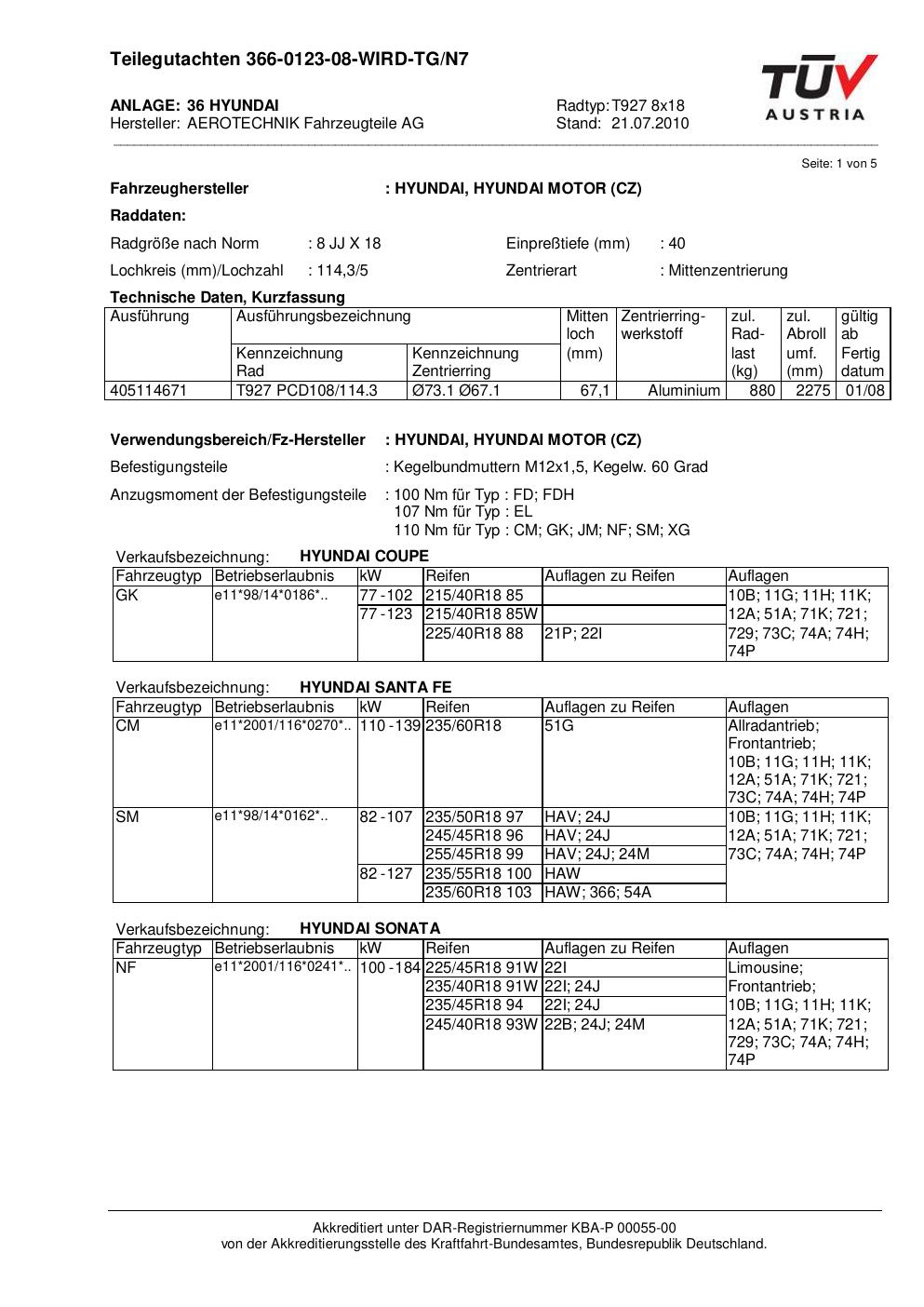 teilegutachten beschriebenen ATS T927 8x18