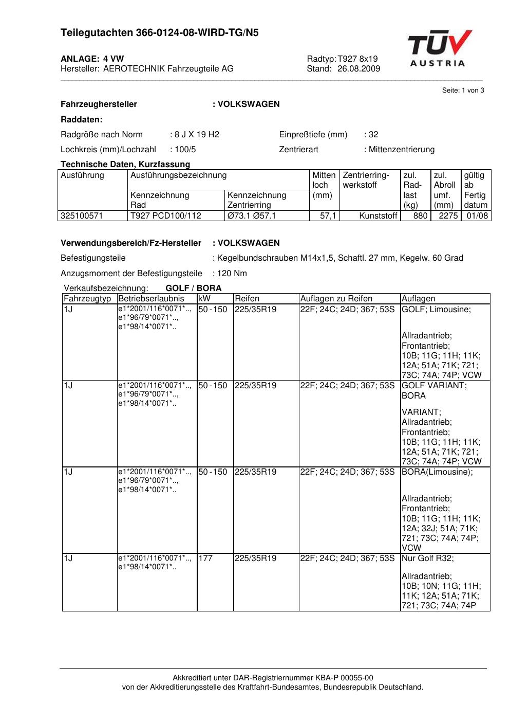teilegutachten beschriebenen ATS T927 8x19