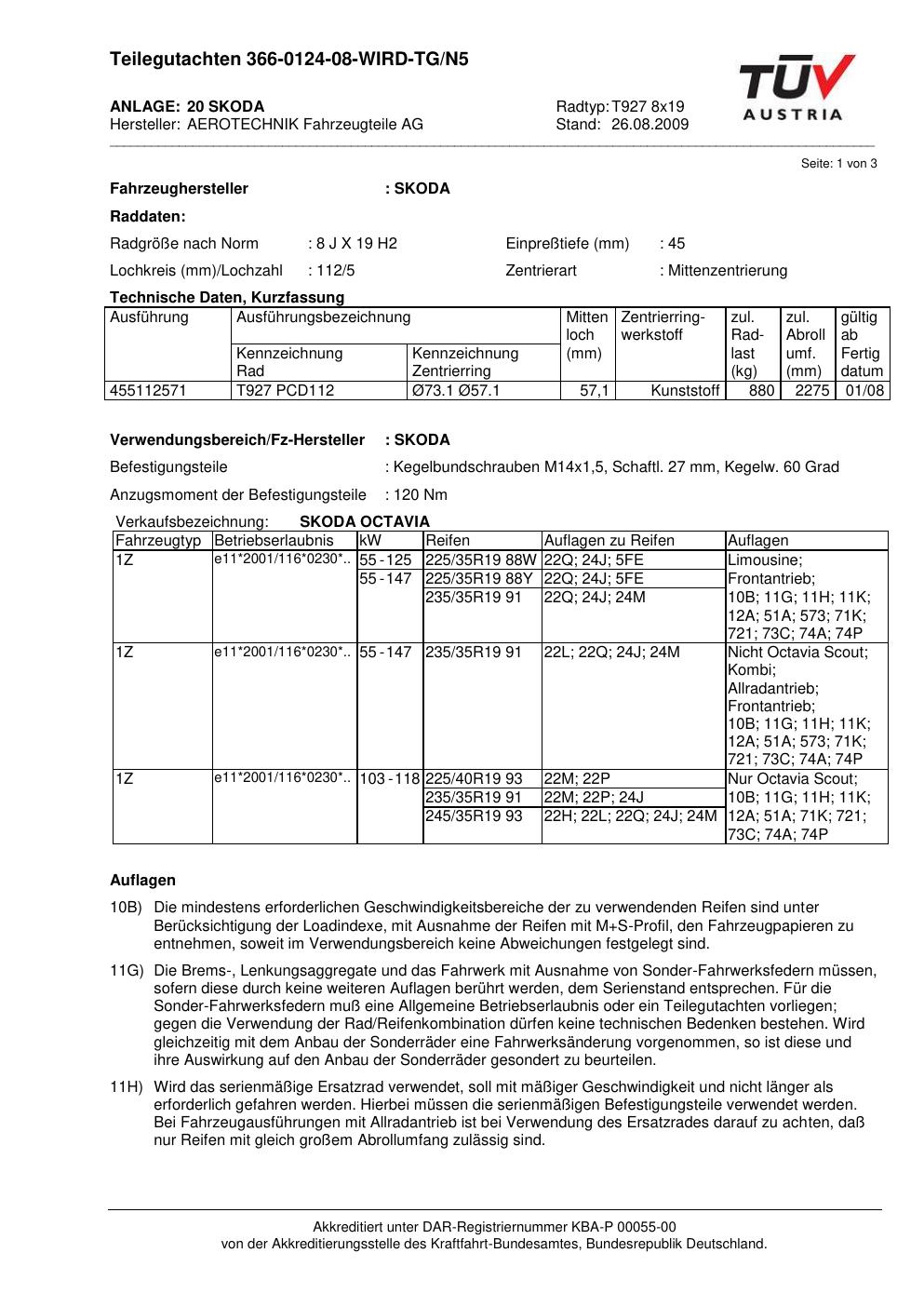 teilegutachten beschriebenen ATS T927 8x19