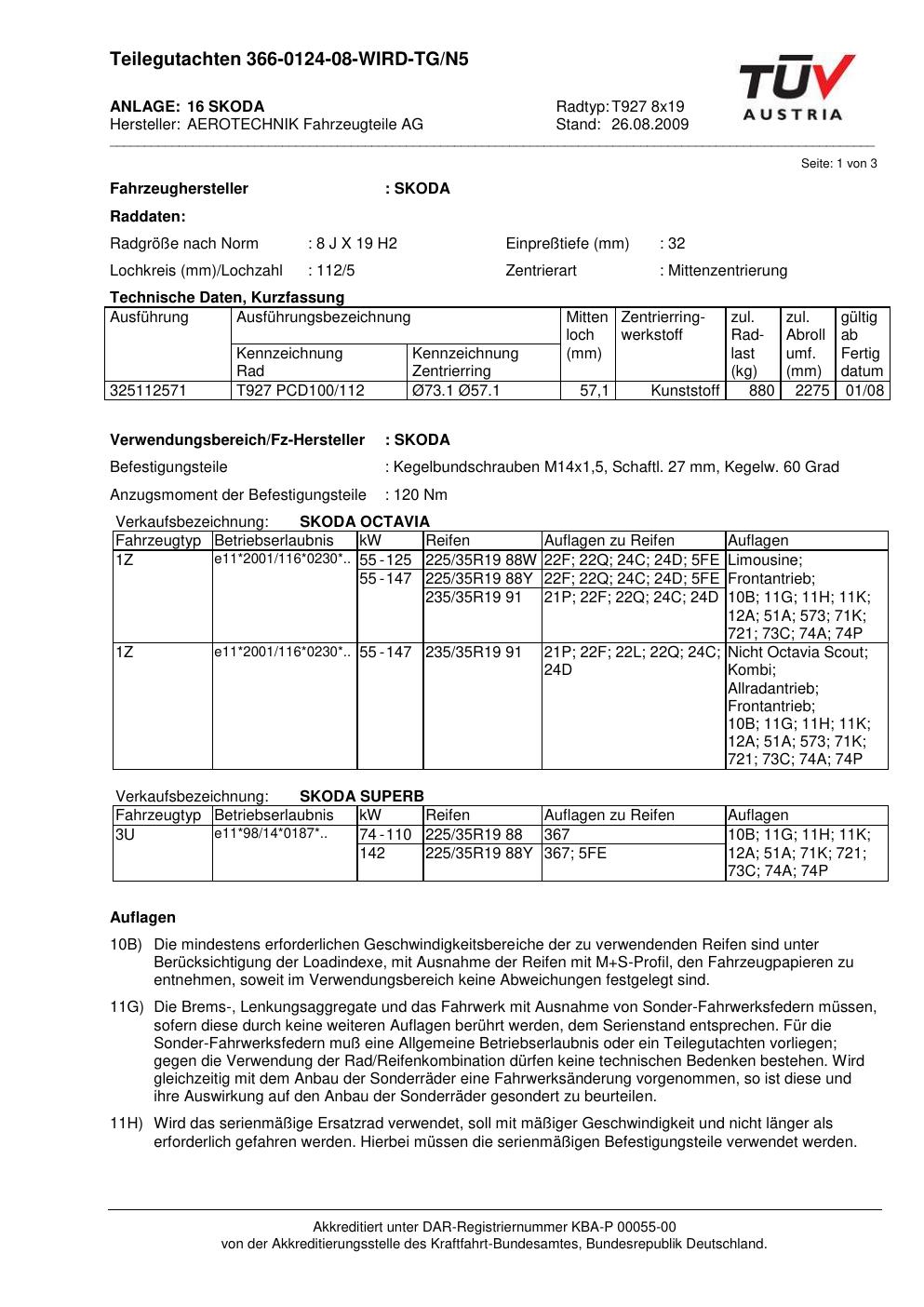 teilegutachten beschriebenen ATS T927 8x19