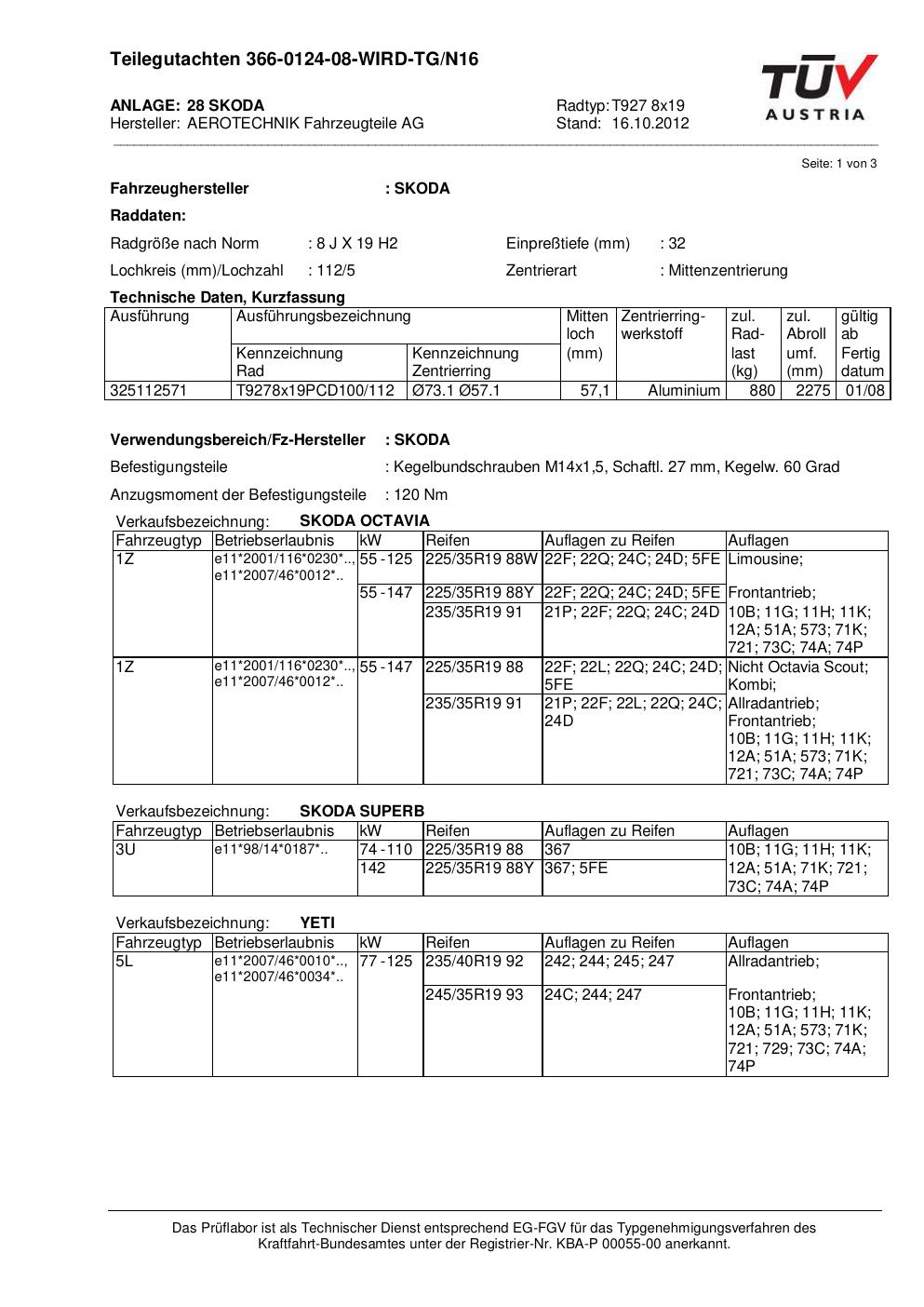 teilegutachten beschriebenen ATS T927 8x19