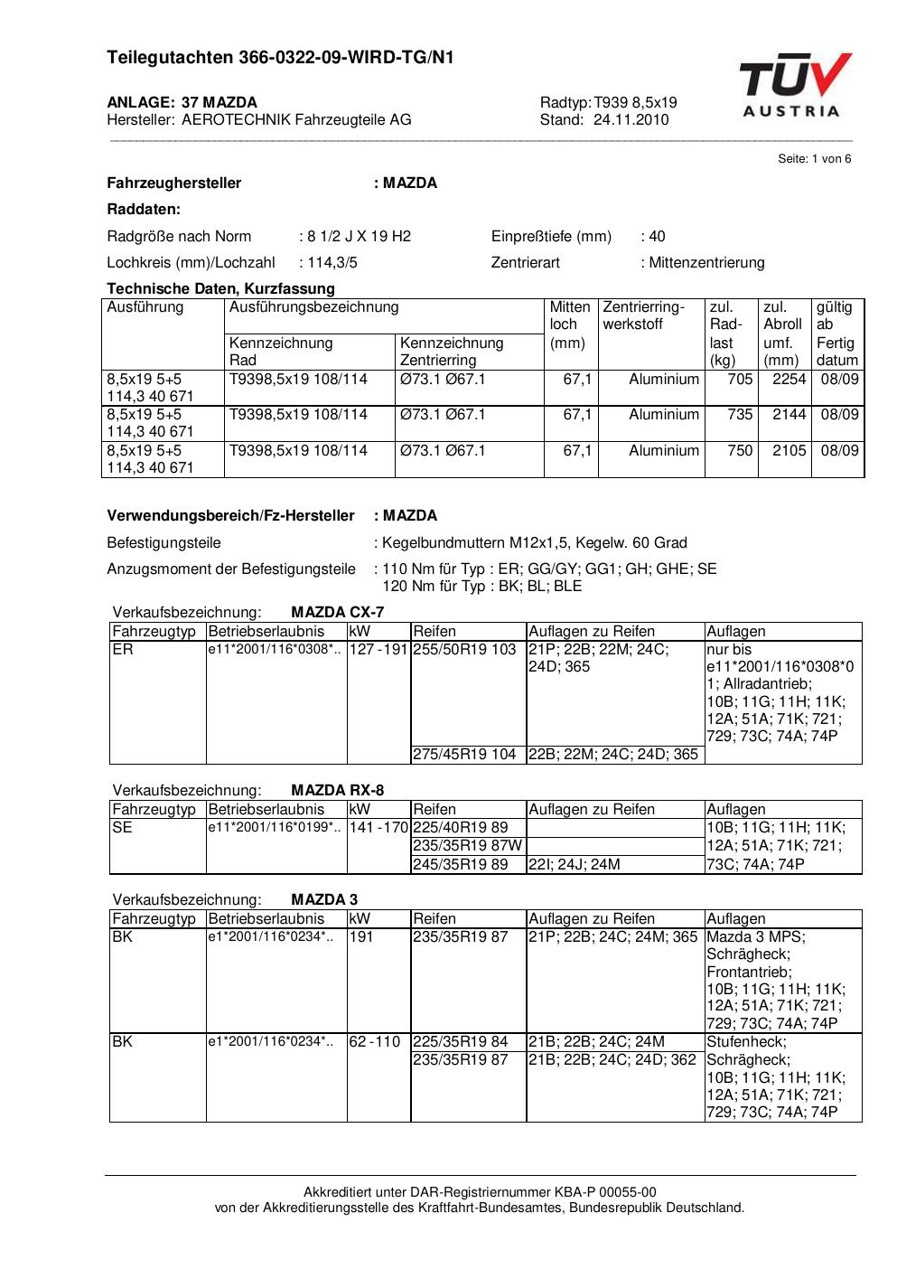 teilegutachten beschriebenen ATS T939 8