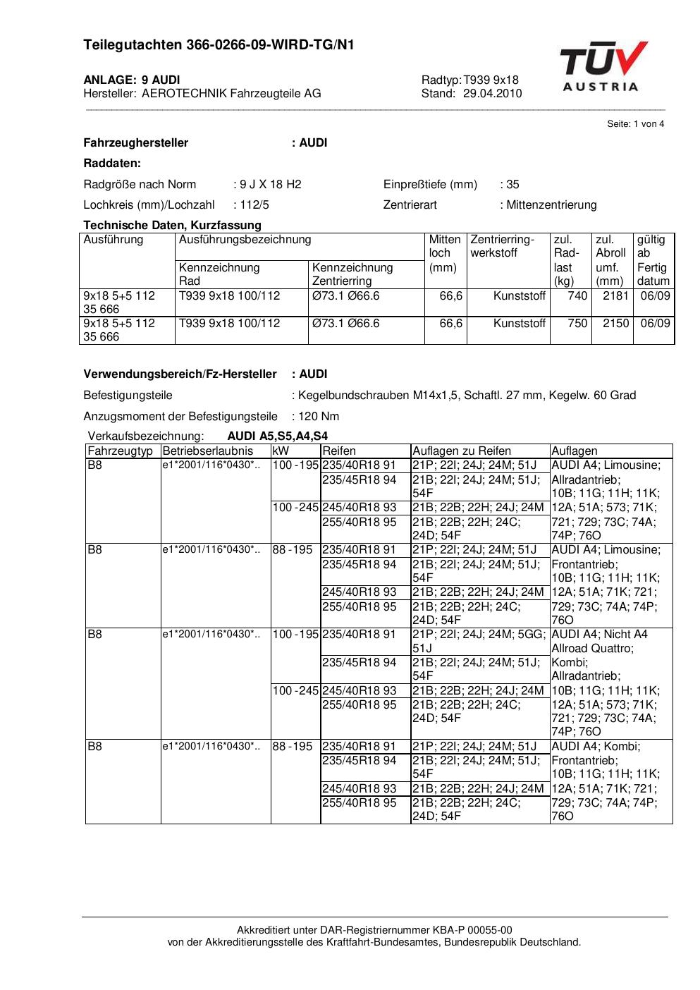 teilegutachten beschriebenen ATS T939 9x18