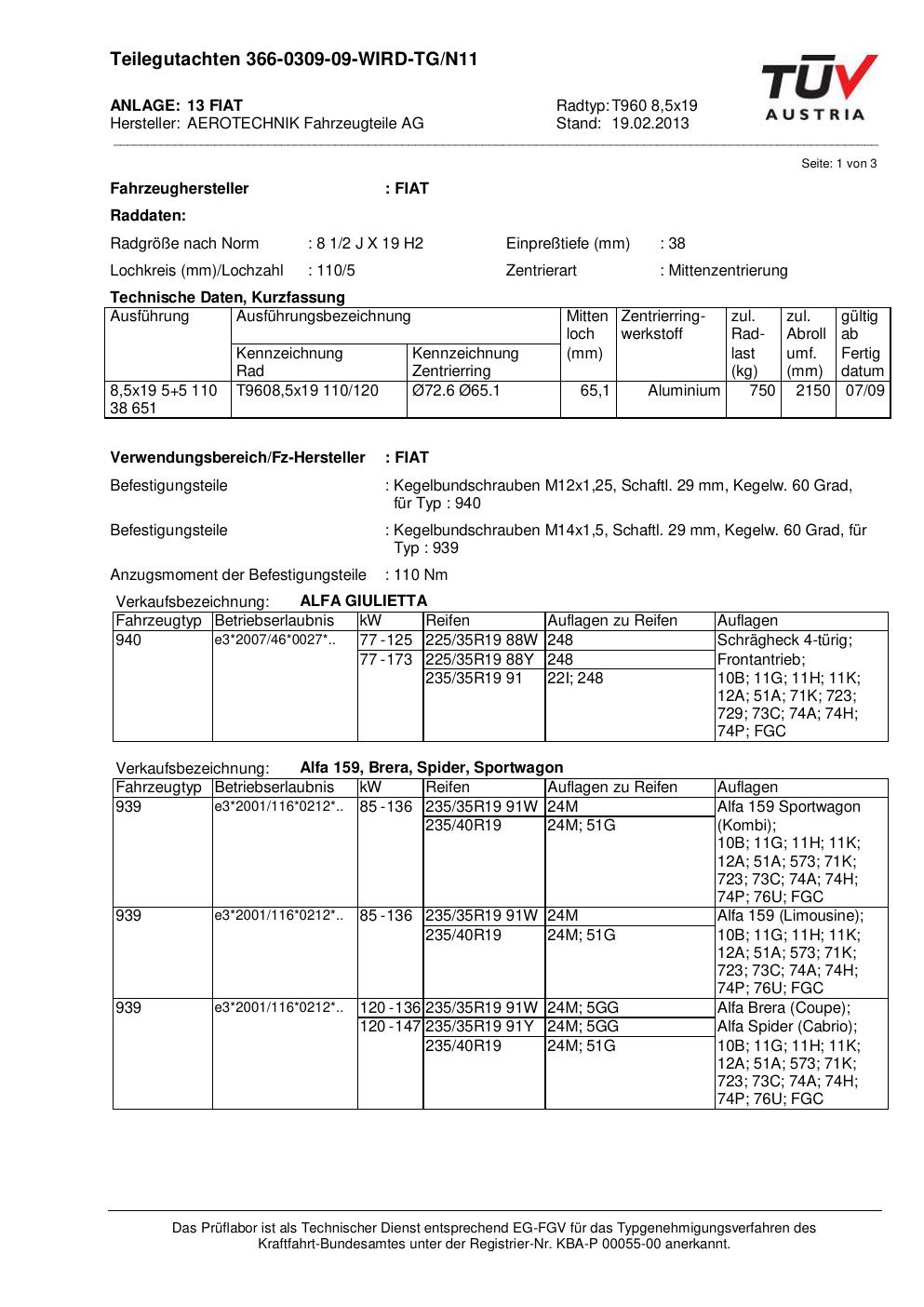 teilegutachten beschriebenen ATS T960 8
