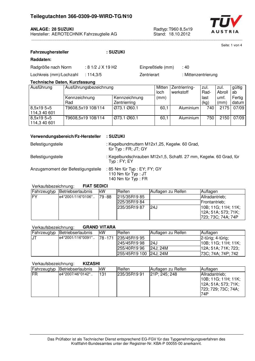 teilegutachten beschriebenen ATS T960 8
