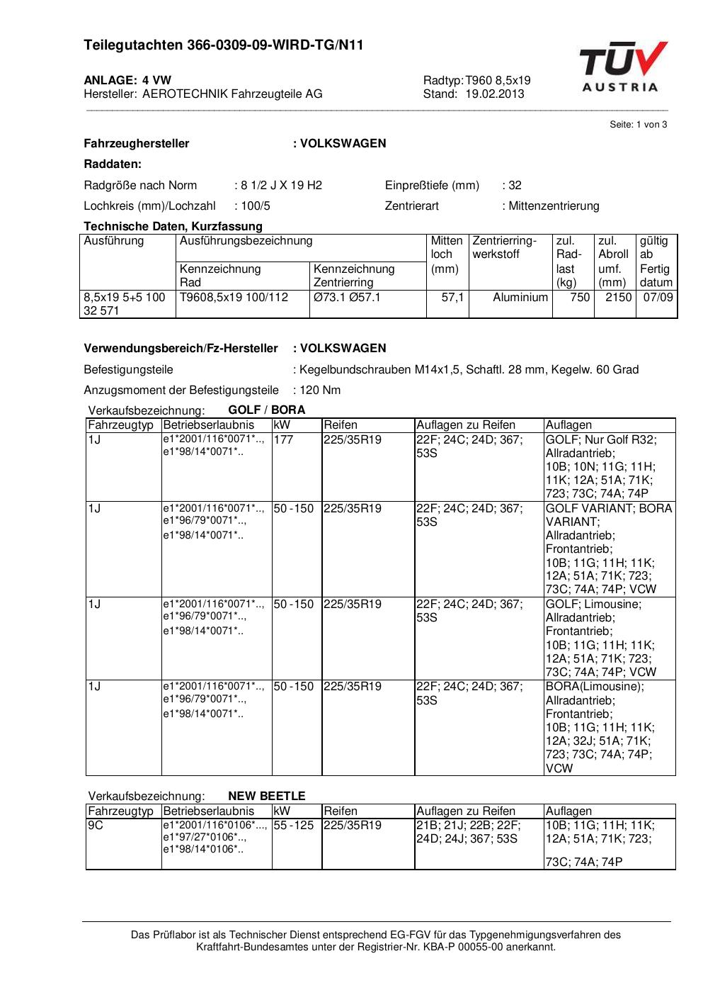 teilegutachten beschriebenen ATS T960 8