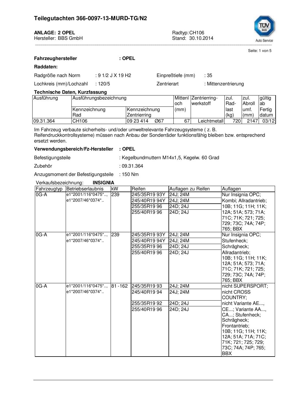 teilegutachten beschriebenen BBS CH106