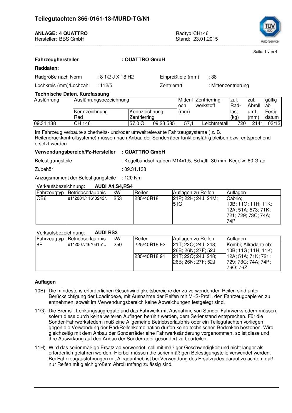 teilegutachten beschriebenen BBS CH146