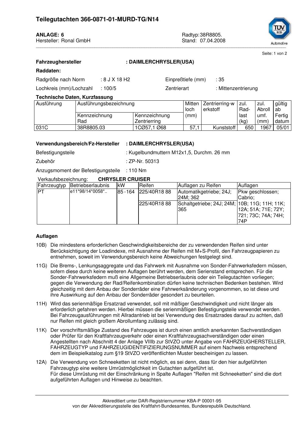 teilegutachten beschriebenen Ronal 38R8805
