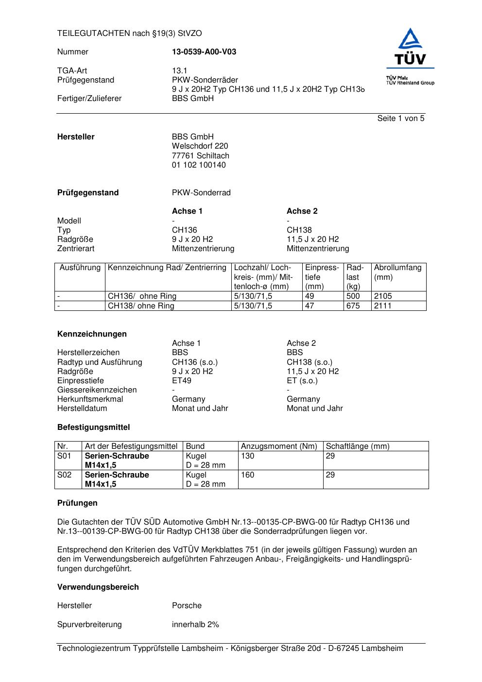 Felgengutachten / teilegutachten für Alufelgen BBS CH136 (9Jx2 ET 0, Mittenloch 0 mm) (Zertifikatsnummer der). Hier kostenlos als PDF herunterladen. Der Download-Link ist 24 Stunden gültig und kann bis zu zwei Mal verwendet werden.