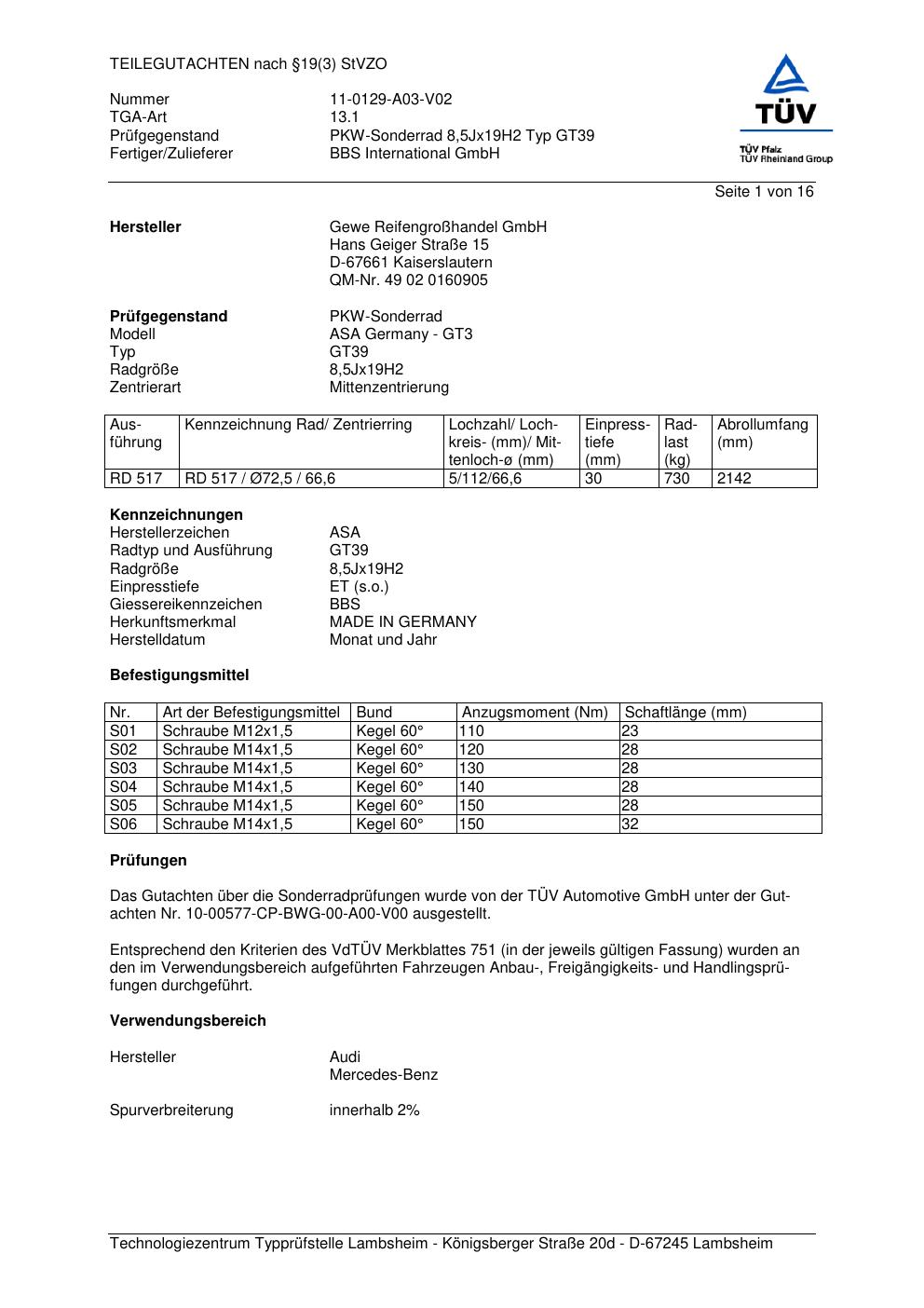 teilegutachten genannten BBS GT39
