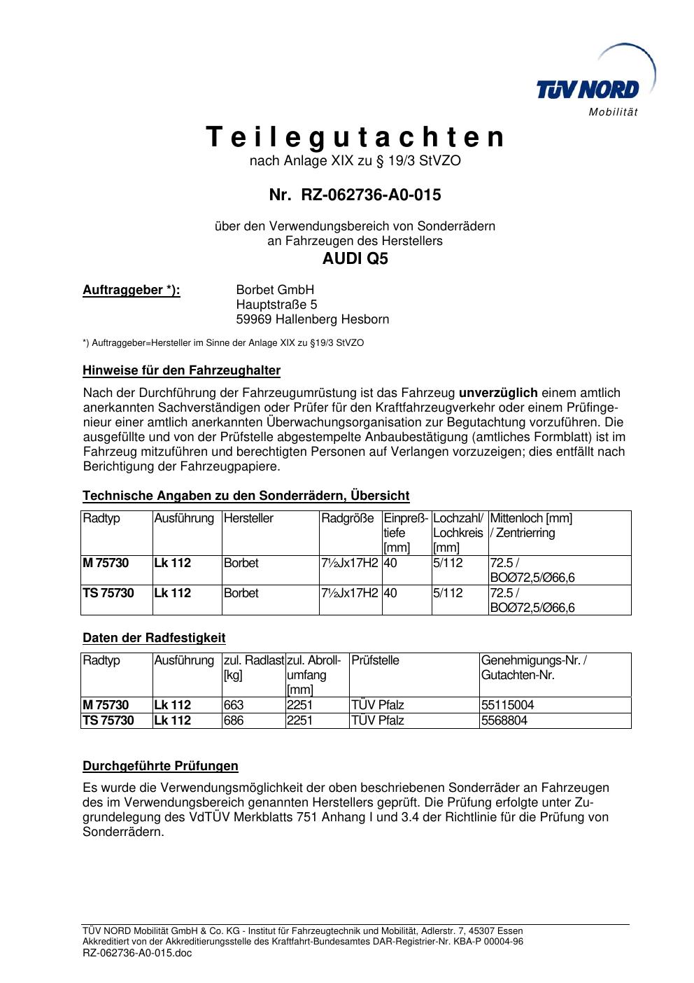 Dieses Gutachten (teilegutachten) bezieht sich auf die Alufelge ATS Ausf in der Ausführung ET 0, Mittenloch 0 mm . Im PDF findest du typischerweise zulässige Reifengrößen, Auflagen/Anbauhinweise und – je nach Dokument – Hinweise zur Eintragung.