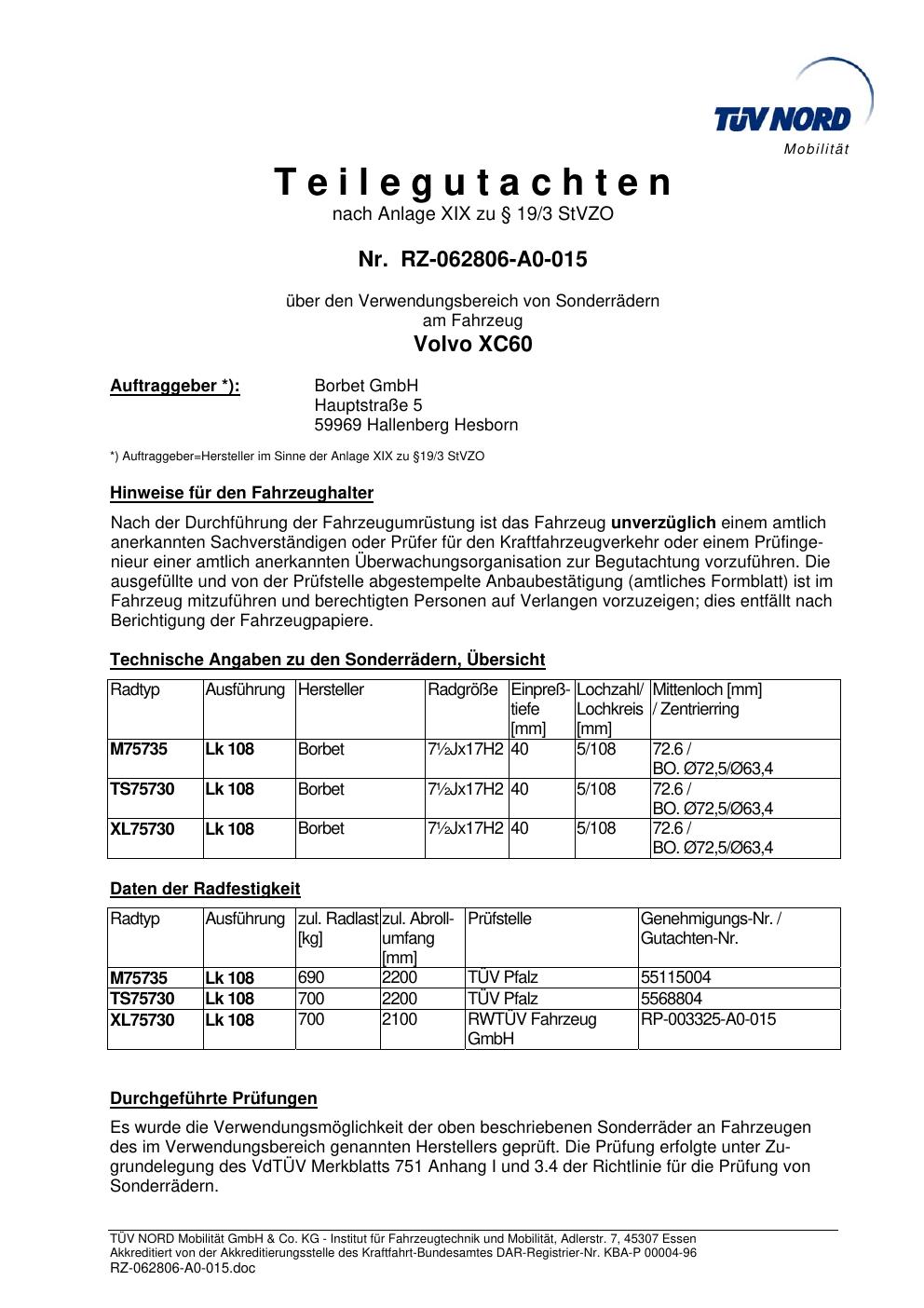 Dieses Gutachten (teilegutachten) bezieht sich auf die Alufelge ATS Ausf in der Ausführung ET 0, Mittenloch 0 mm . Im PDF findest du typischerweise zulässige Reifengrößen, Auflagen/Anbauhinweise und – je nach Dokument – Hinweise zur Eintragung.