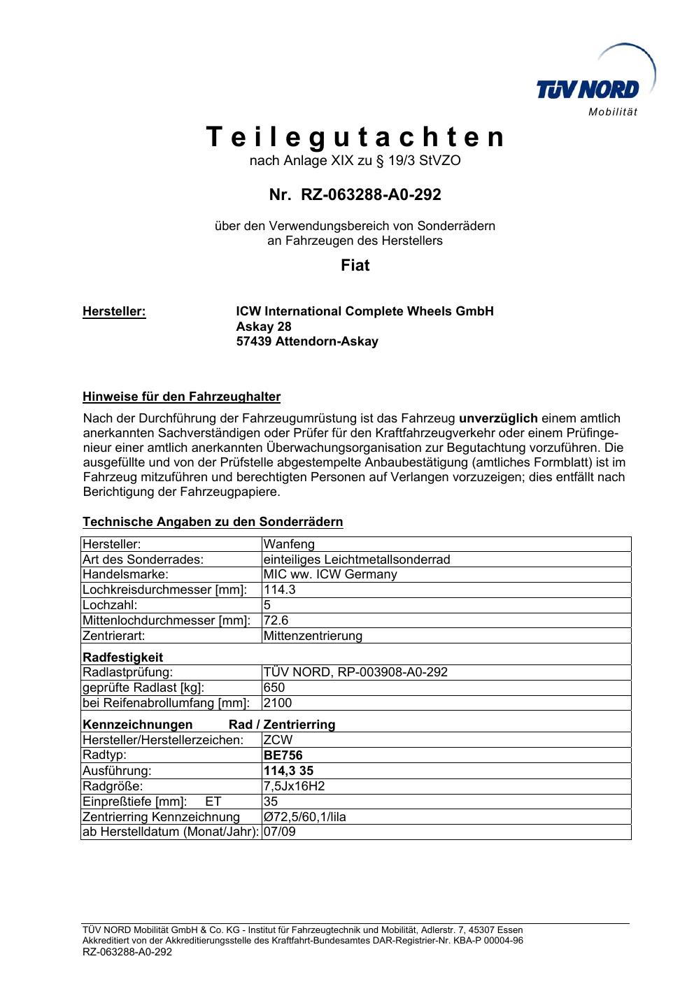 teilegutachten igung ATS BE756