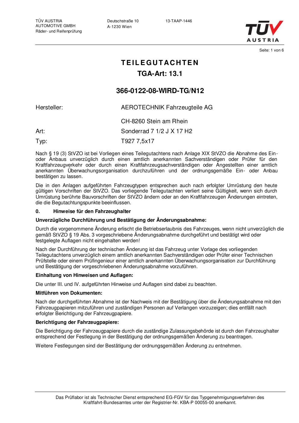 Dieses Gutachten (teilegutachten) bezieht sich auf die Alufelge ATS T960 in der Ausführung 2Jx17 ET 0, Mittenloch 0 mm . Im PDF findest du typischerweise zulässige Reifengrößen, Auflagen/Anbauhinweise und – je nach Dokument – Hinweise zur Eintragung.