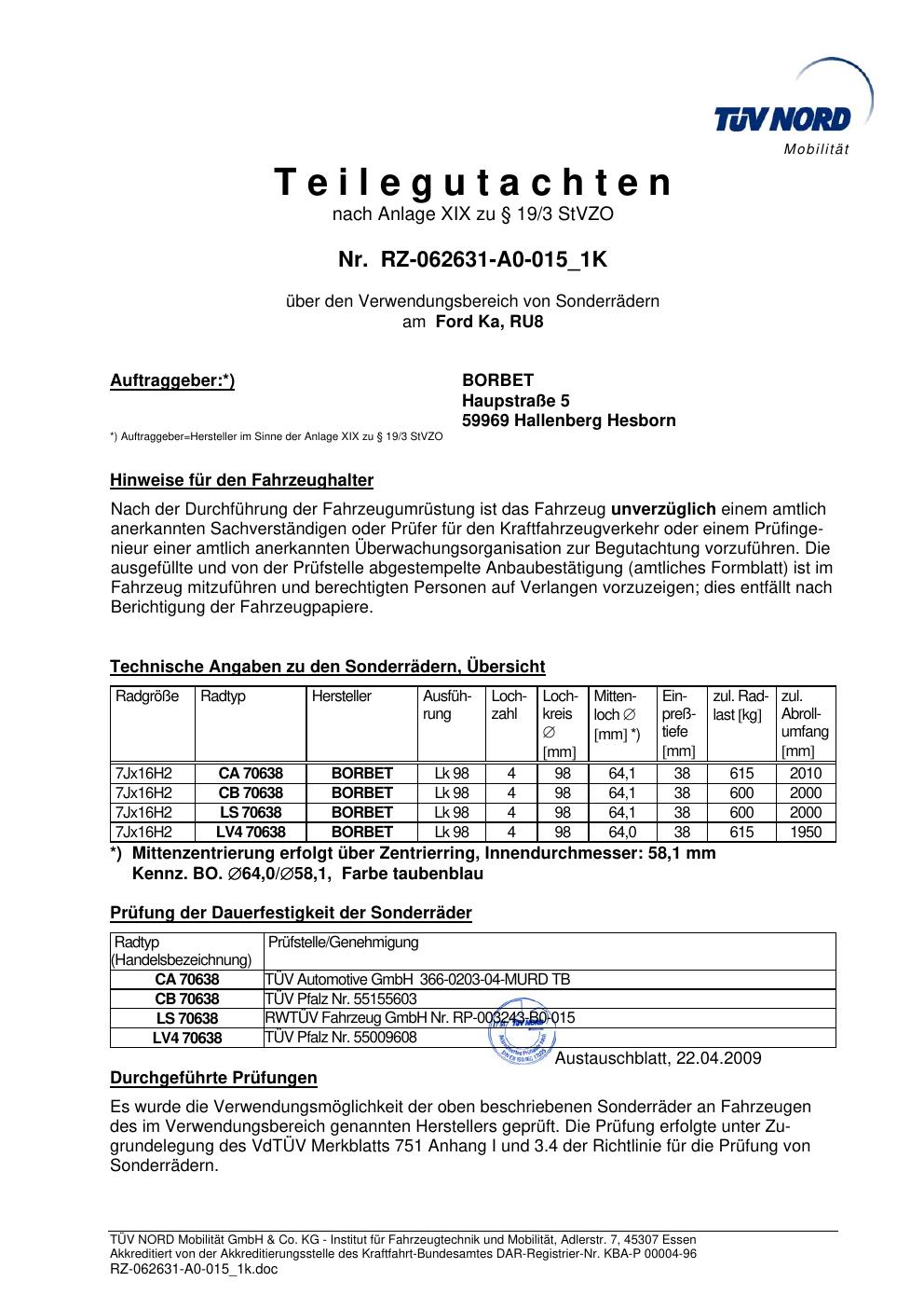 teilegutachten igung ATS LS 70638