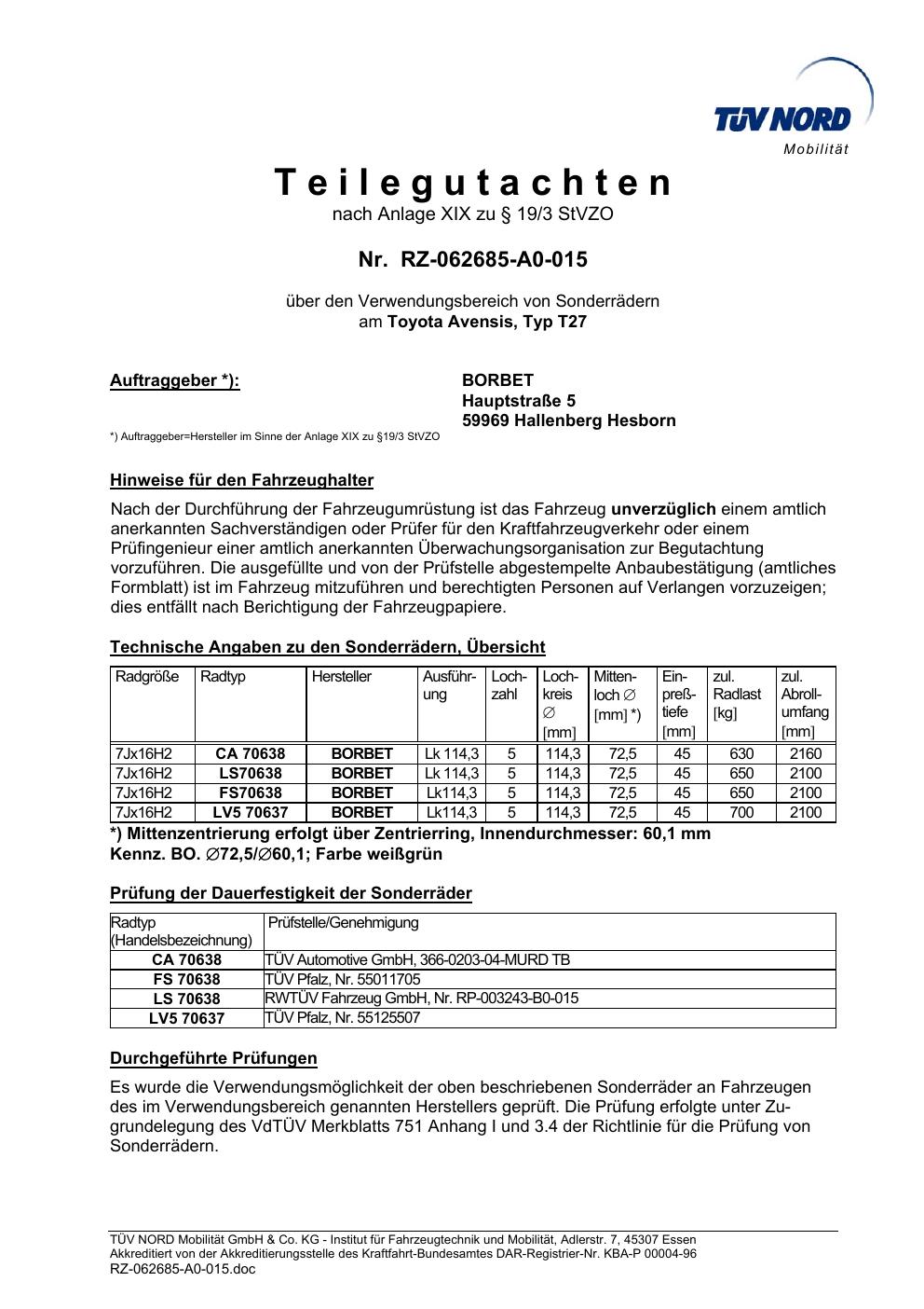 Dieses Gutachten (teilegutachten) bezieht sich auf die Alufelge ATS T27 in der Ausführung 7Jx16 ET 0, Mittenloch 0 mm . Im PDF findest du typischerweise zulässige Reifengrößen, Auflagen/Anbauhinweise und – je nach Dokument – Hinweise zur Eintragung.