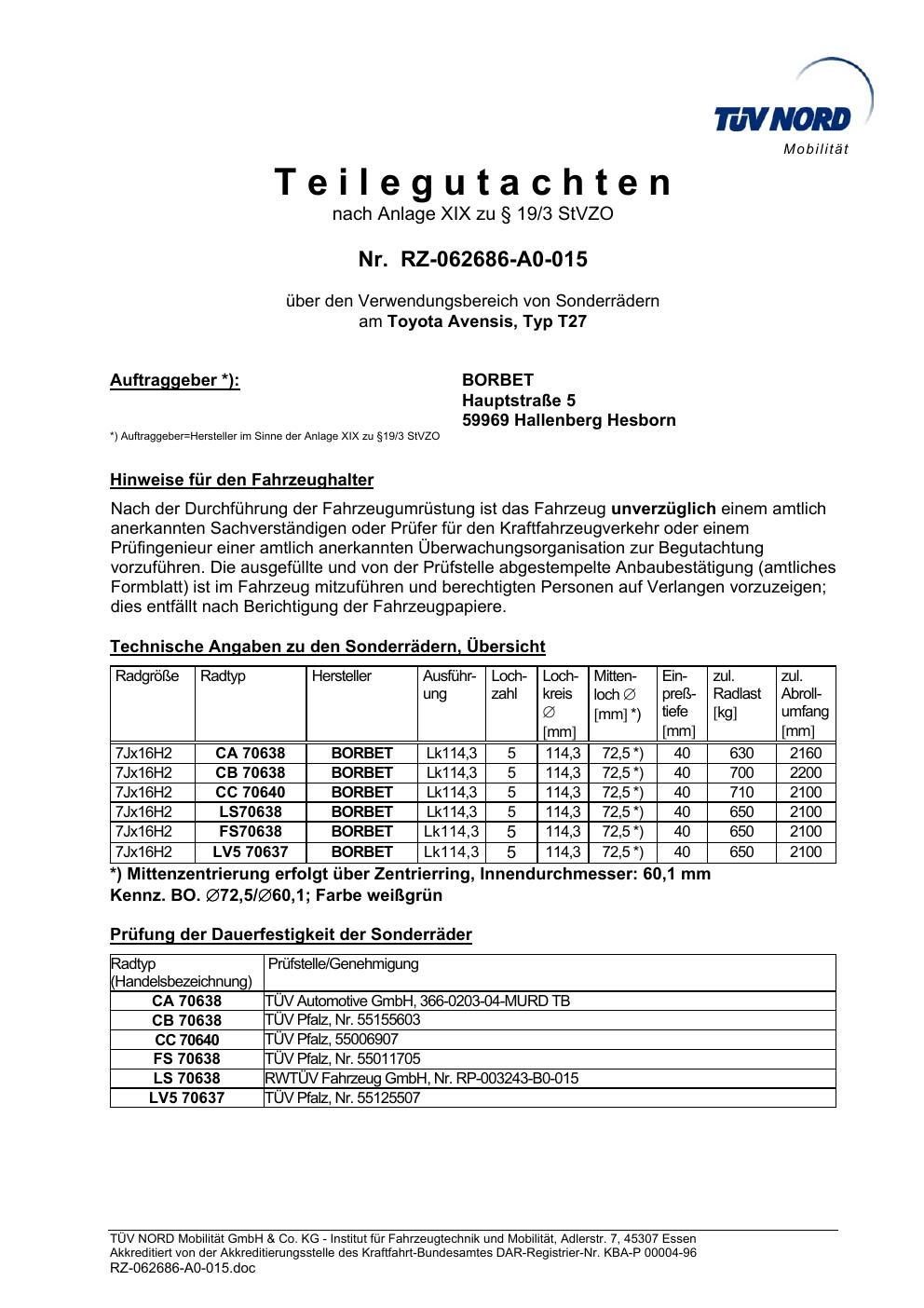 Dieses Gutachten (teilegutachten) bezieht sich auf die Alufelge ATS T27 in der Ausführung 7Jx16 ET 0, Mittenloch 0 mm . Im PDF findest du typischerweise zulässige Reifengrößen, Auflagen/Anbauhinweise und – je nach Dokument – Hinweise zur Eintragung.