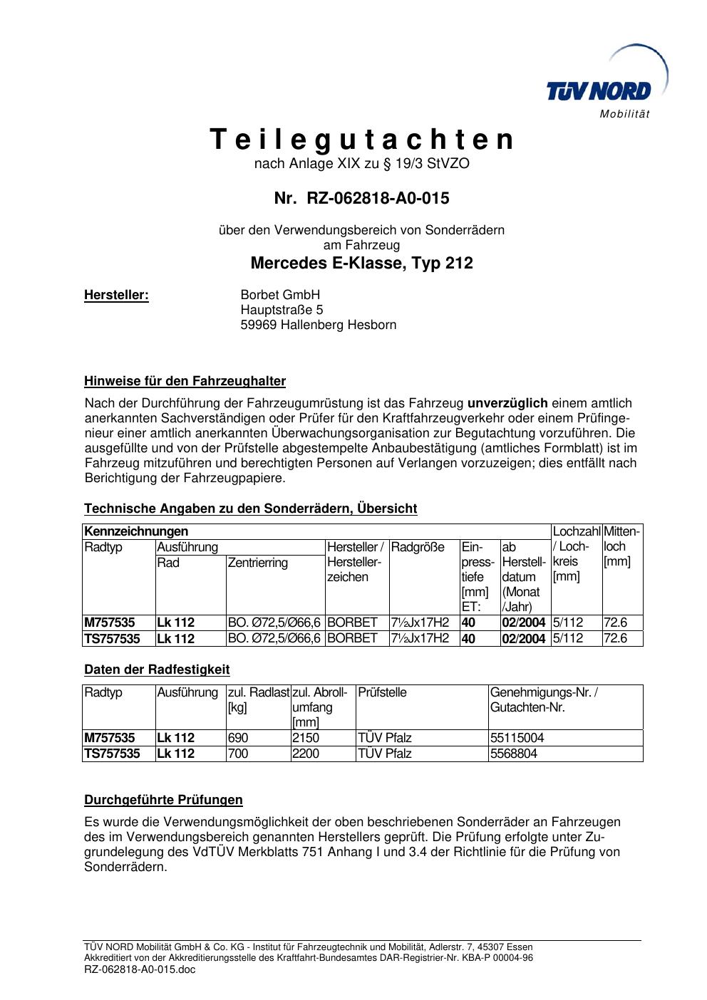 Felgengutachten / teilegutachten für Alufelgen Borbet 212 (ET 0, Mittenloch 0 mm) (Zertifikatsnummer igung). Hier kostenlos als PDF herunterladen. Der Download-Link ist 24 Stunden gültig und kann bis zu zwei Mal verwendet werden.
