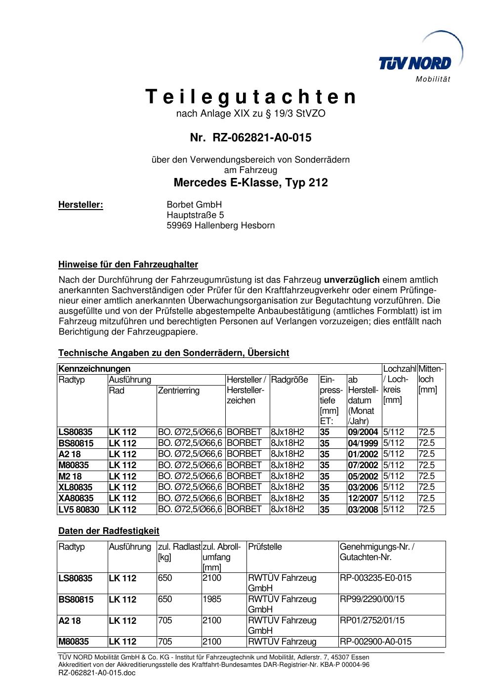 teilegutachten igung Borbet 212