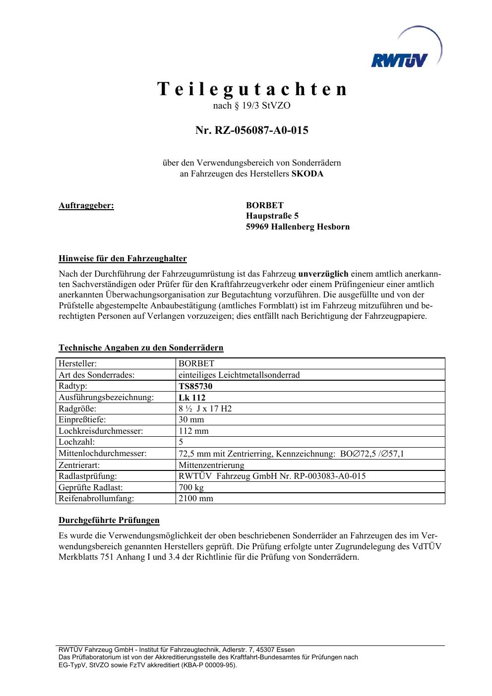 teilegutachten igung Borbet 3U