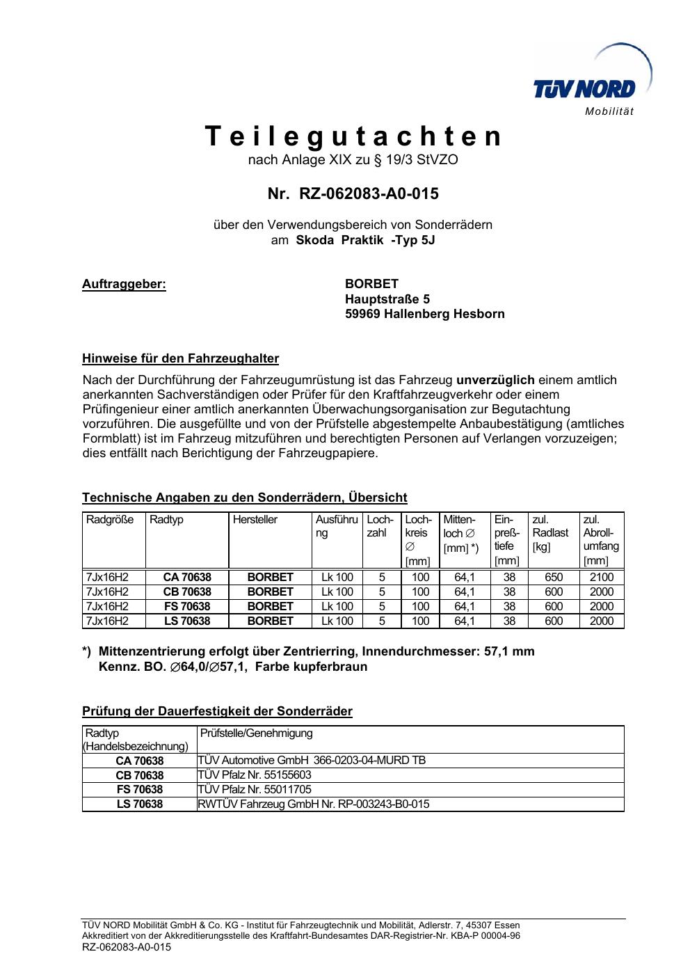 teilegutachten igung Borbet 5J