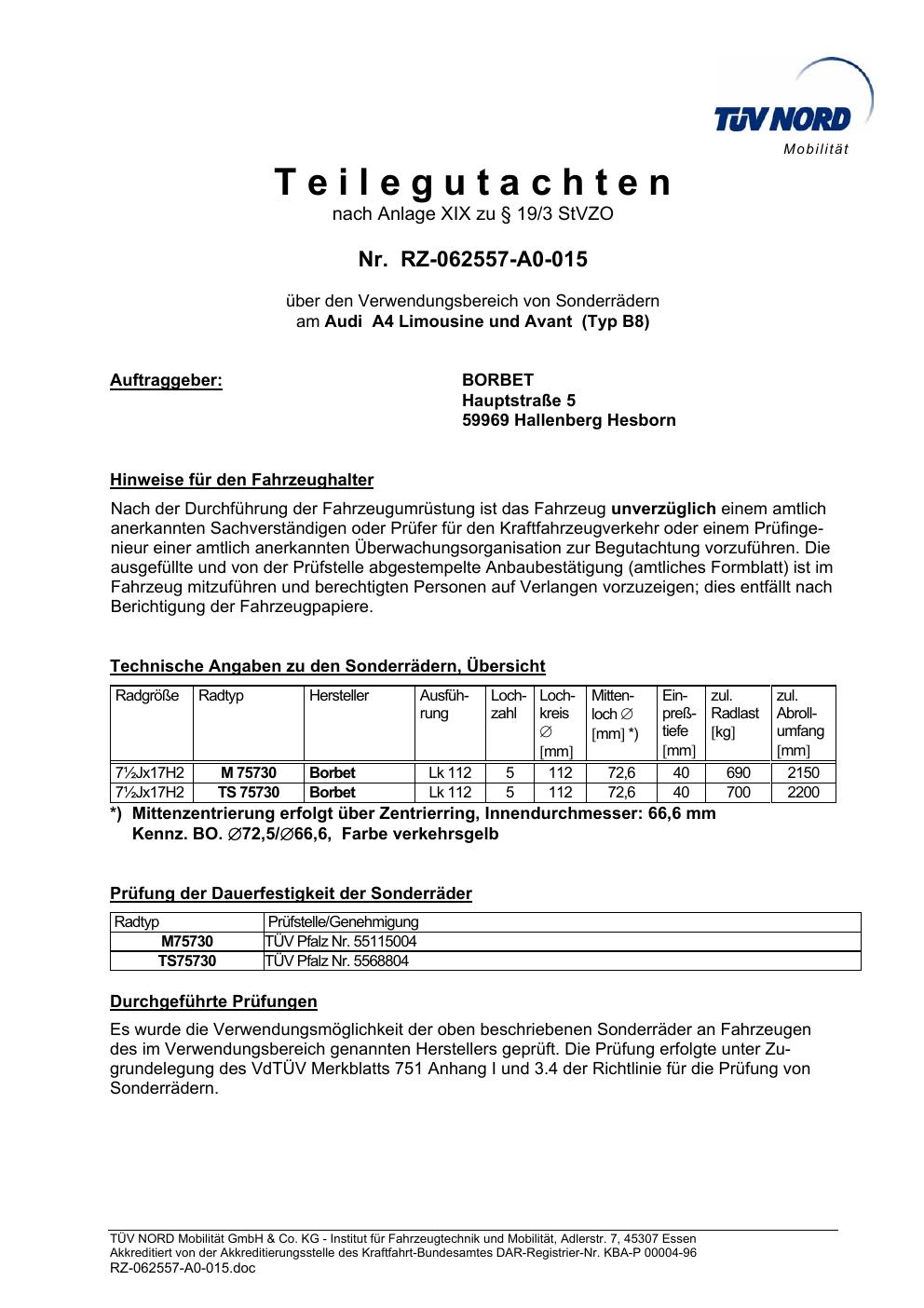 Felgengutachten / teilegutachten für Alufelgen Borbet B8 (ET 0, Mittenloch 0 mm) (Zertifikatsnummer igung). Hier kostenlos als PDF herunterladen. Der Download-Link ist 24 Stunden gültig und kann bis zu zwei Mal verwendet werden.