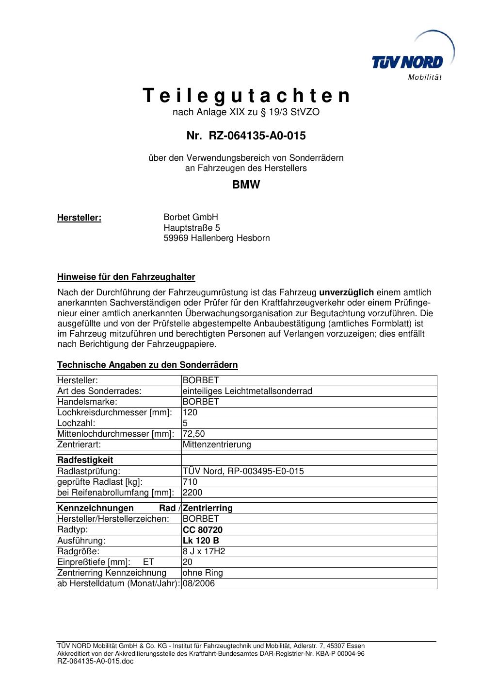 teilegutachten igung Borbet CC 80720