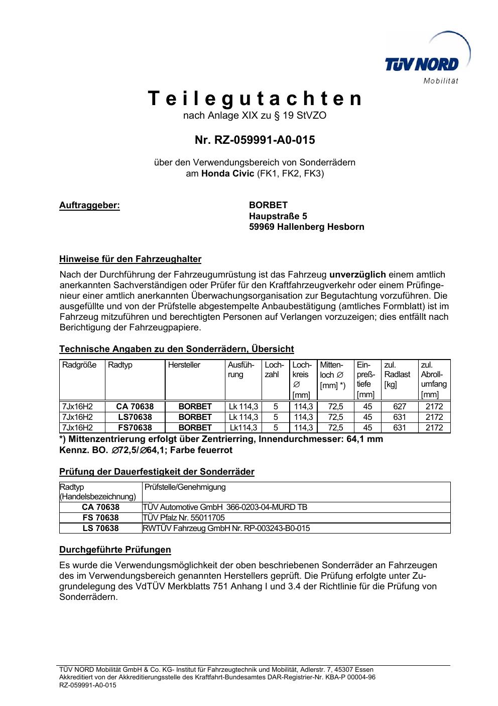 teilegutachten igung Borbet TS85930