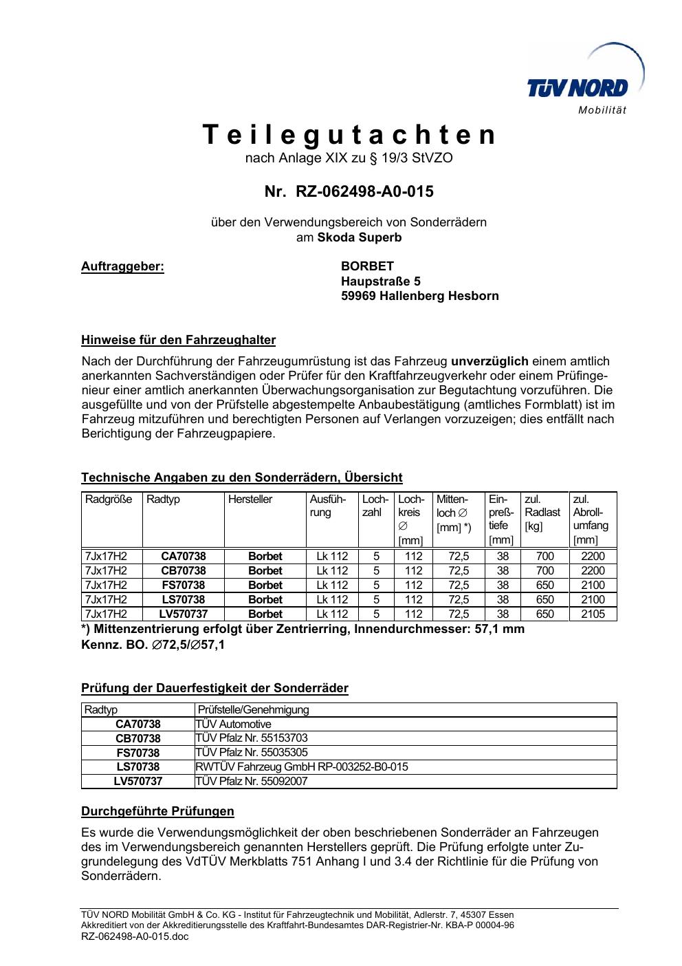 teilegutachten igung Borbet TS85930