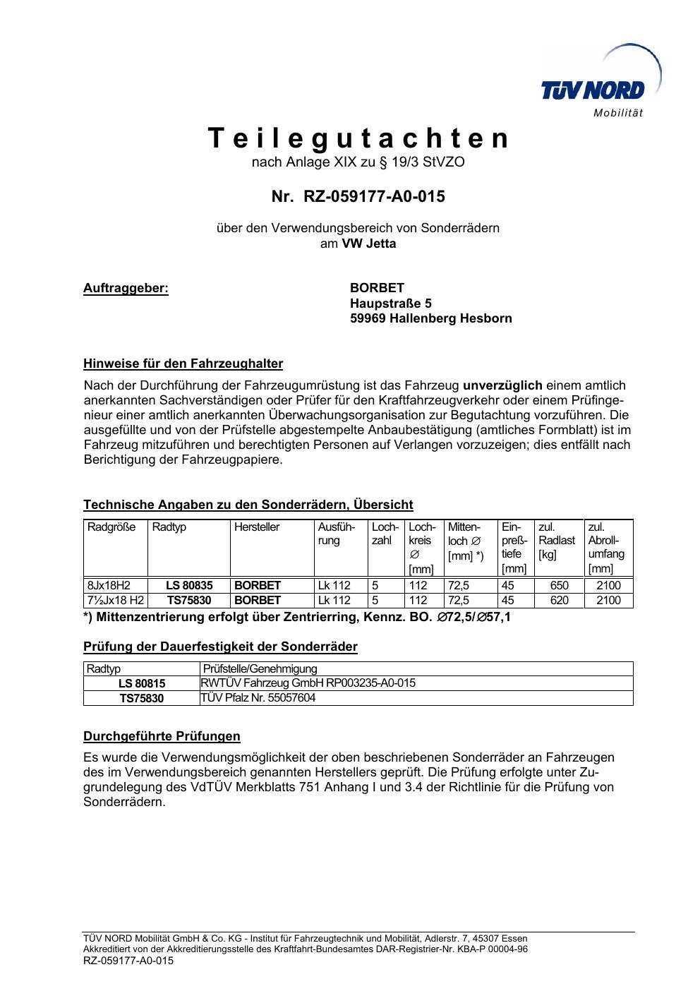 teilegutachten igung Borbet TS85930